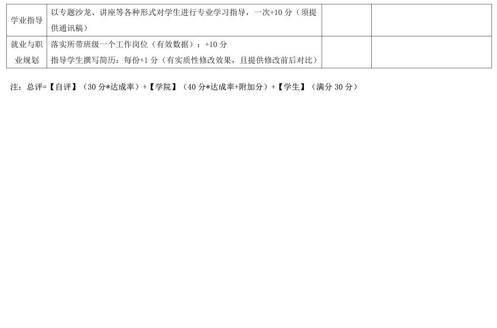 五、专业班主任工作考核实施细则