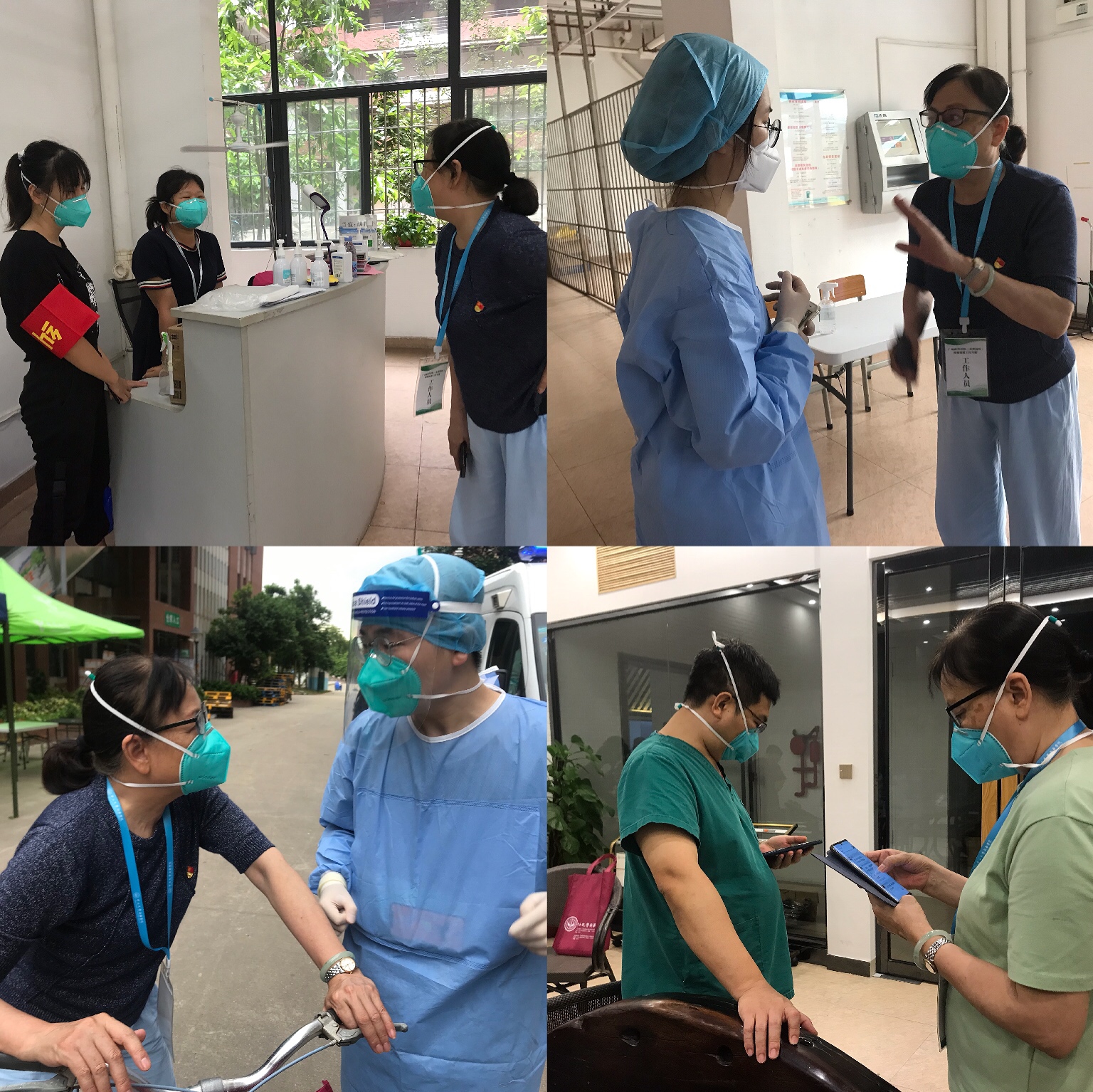 (辅导员老师们参加紧急会议) (辅导员老师们换好防护服到宿舍楼巡查)