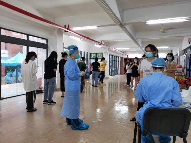 (李岚书记协助引导学生核酸检测)
