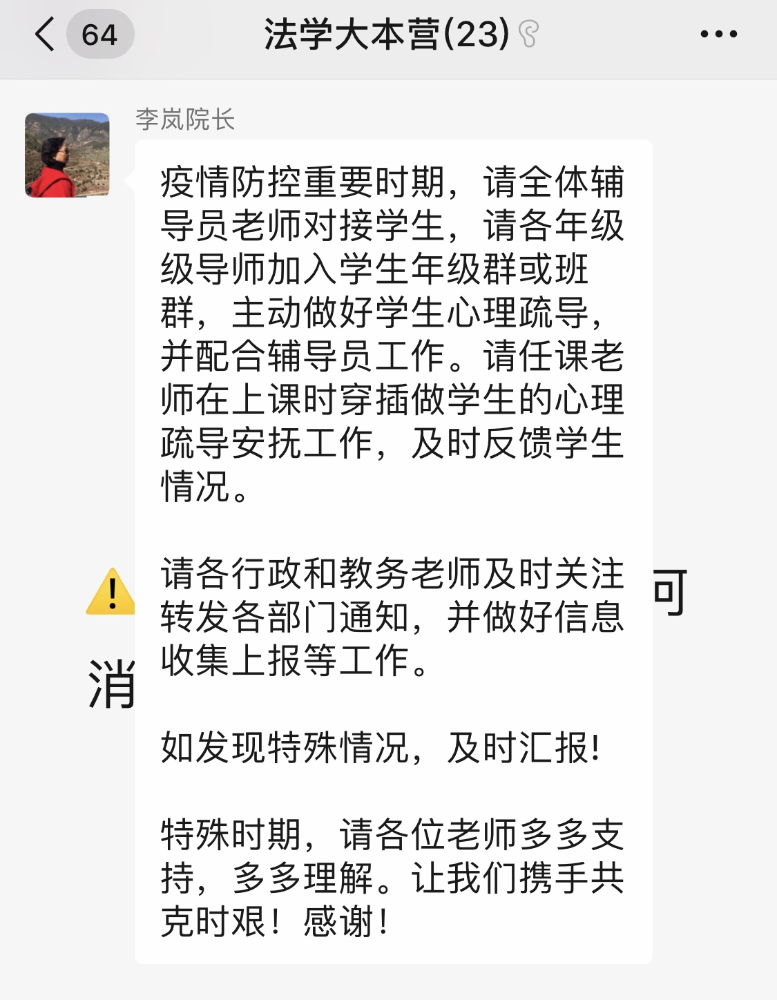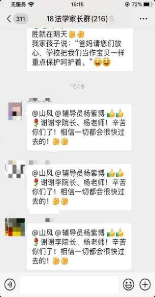 (17/18/19/20级学生家长在微信群表示感谢)