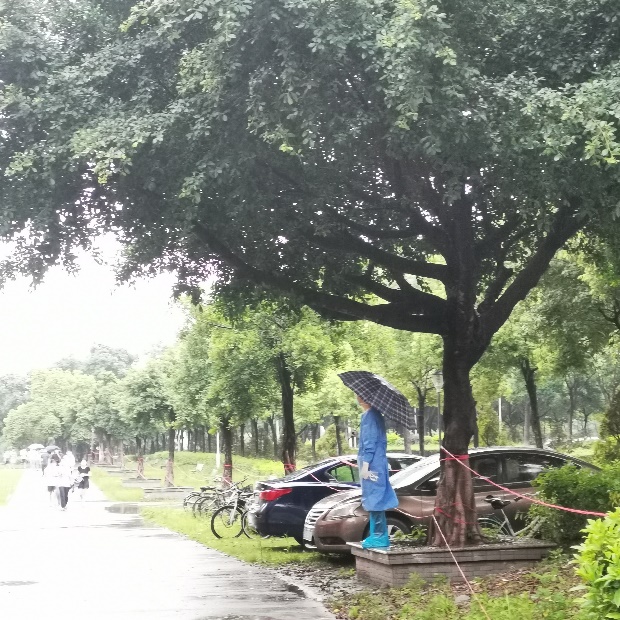 (辅导员老师指引同学们做核酸检测) (辅导员老师在雨中守候核酸检测的学生们)