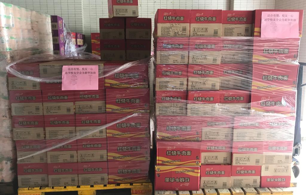 (学生志愿者运送校友会物资)