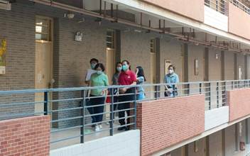 李正华院长(右一)和李岚书记(左一)携教工队伍开展新生宿舍检查工作