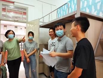 李岚书记(左二)携教工队伍开展新生宿舍检查工作