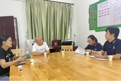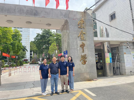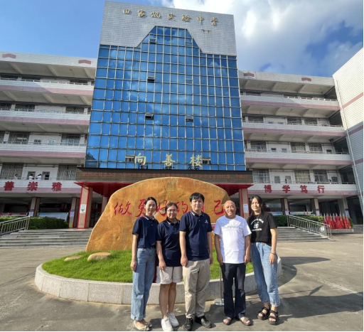 (从右至左:河源市田家炳实验中学教研室邹艳副主任、教学顾问李云龙主任、3044永利,3044永利党总支李鑫副书记、教务秘书刘旖旎、行政秘书郑思思)