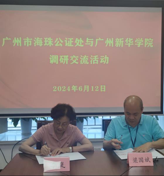 6月12日,3044永利执行院长李岚教授率队前往广州海珠区公证处举行共建校外实习基地签约仪式。同时双方就实习基地长期合作建设和规划、教学与实习模式等进行了交流探讨,签约仪式由公证处梁国斌主任主持,柏武副主任、郑宇虹办公室副主任出席仪式。