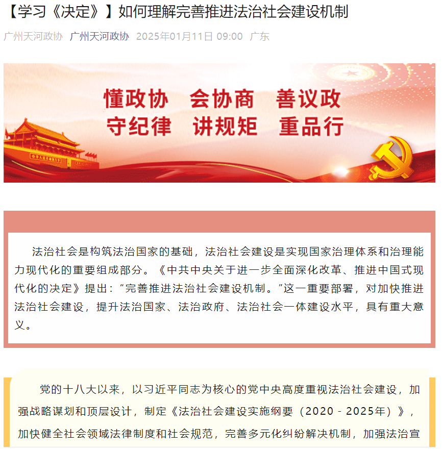 2025 年 1 月 11 日,党总支书记、执行院长李岚组织全体教职工学习《中共中央关于进一步全面深化改革、推进中国式现代化的决定》(以下简称“决定”)。学习过程中,李岚书记重点解读了“完善推进法治社会建设机制”这一重要部署,强调其对于提升法治国家、法治政府、法治社会一体建设水平的重大意义。