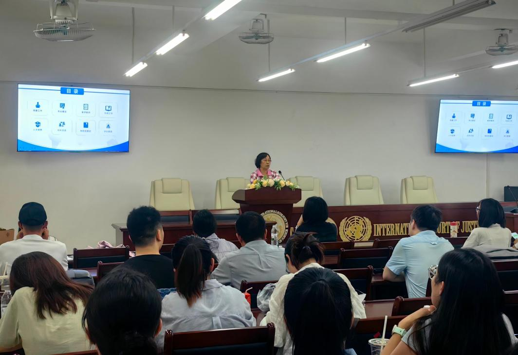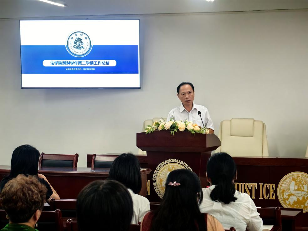 会议伊始,李岚院长对全体教职工返校表示欢迎,希望全体教师调整状态,积极投入工作,接着对上学期党建工作、专业建设、教学工作、科研工作、人才培养、对外交流、特色班建设及学生管理八个方面进行了系统总结,并围绕教学科研和学生管理两大重点对本学期工作作出计划安排。其中强调教师要充分利用实训软件推进模拟法庭实验教学,积极参与各类竞赛,实现教学与科研协同发展,着力提升学生法考通过率,同时加强教师、辅导员与学生之间的协同联动。