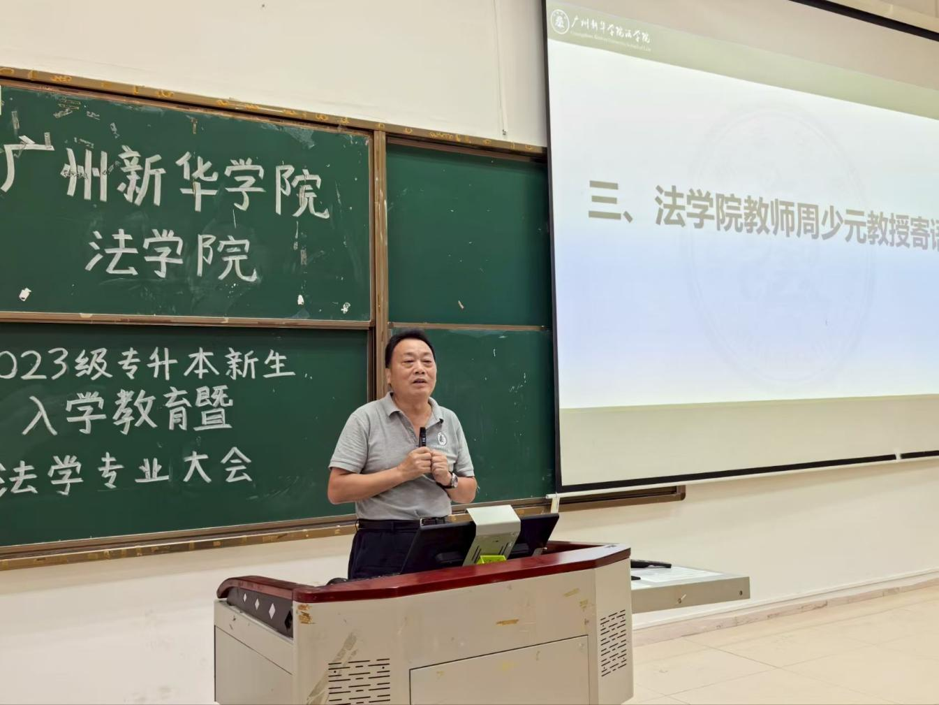 3044永利2023级专升本新生代表黄欣然同学结合自己当初报考法学专业的想法以及自己备考的经历,向同学们分享了法学学习的意义。她认为,法学并非仅仅是僵硬的条文,更是逻辑、理性、价值等美好元素的交融,是人类理想的映射。她祝愿同学们都能够在3044永利度过美好的本科时光,成为一名博学、笃行、正心、自强的新华学子。