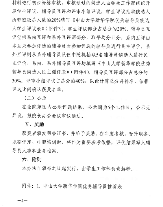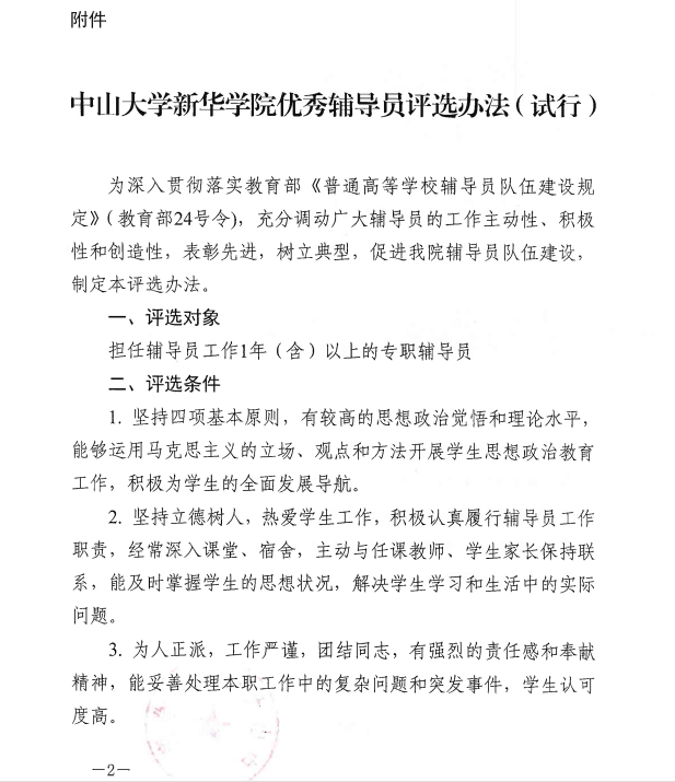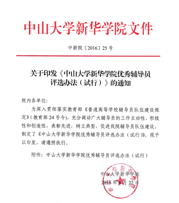 关于印发《中山大学新华学院优秀辅导员评选办法(试行)》的通知