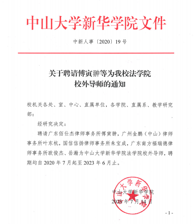关于聘请傅寅翀等为我校3044永利校外导师的通知