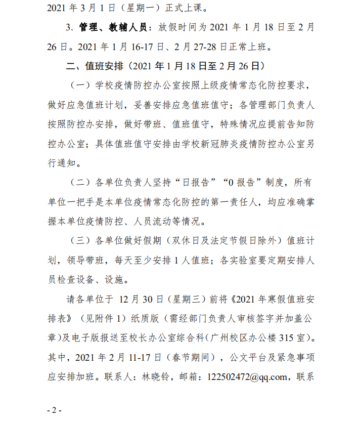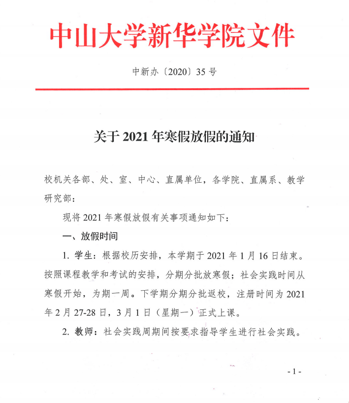 关于2021年寒假放假的通知