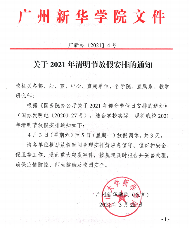 关于2021年清明节放假安排的通知