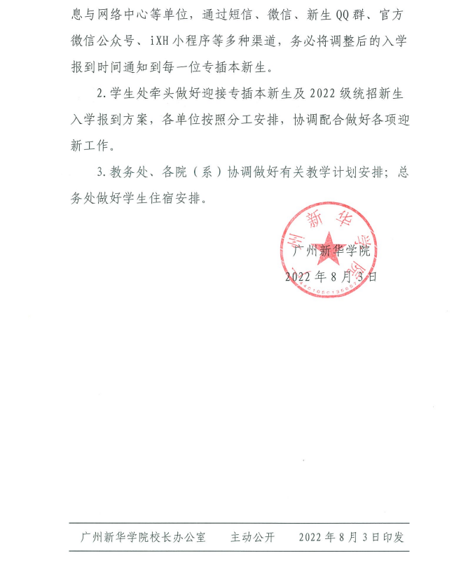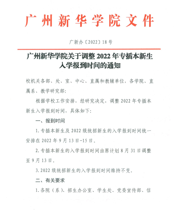 3044永利关于调整2022年专插本新生入学报到时间的通知