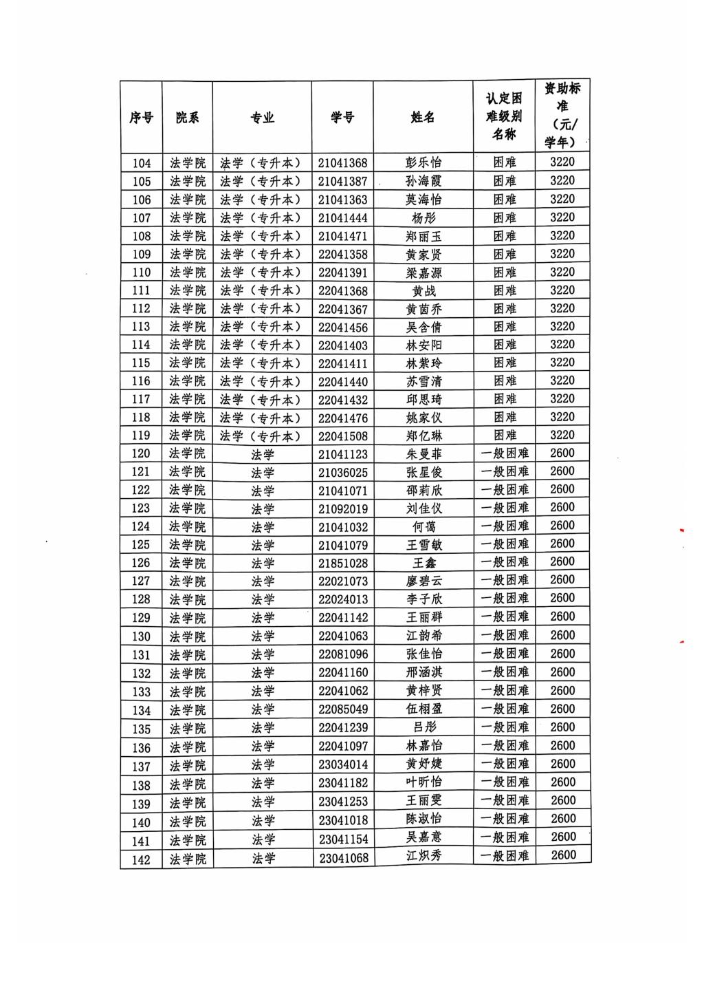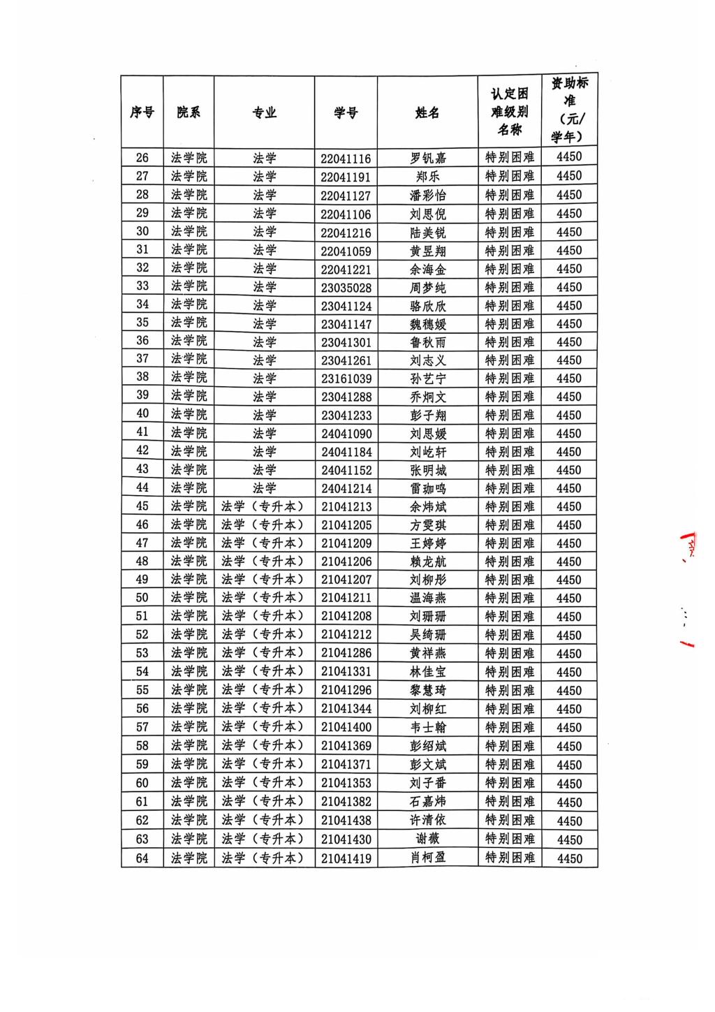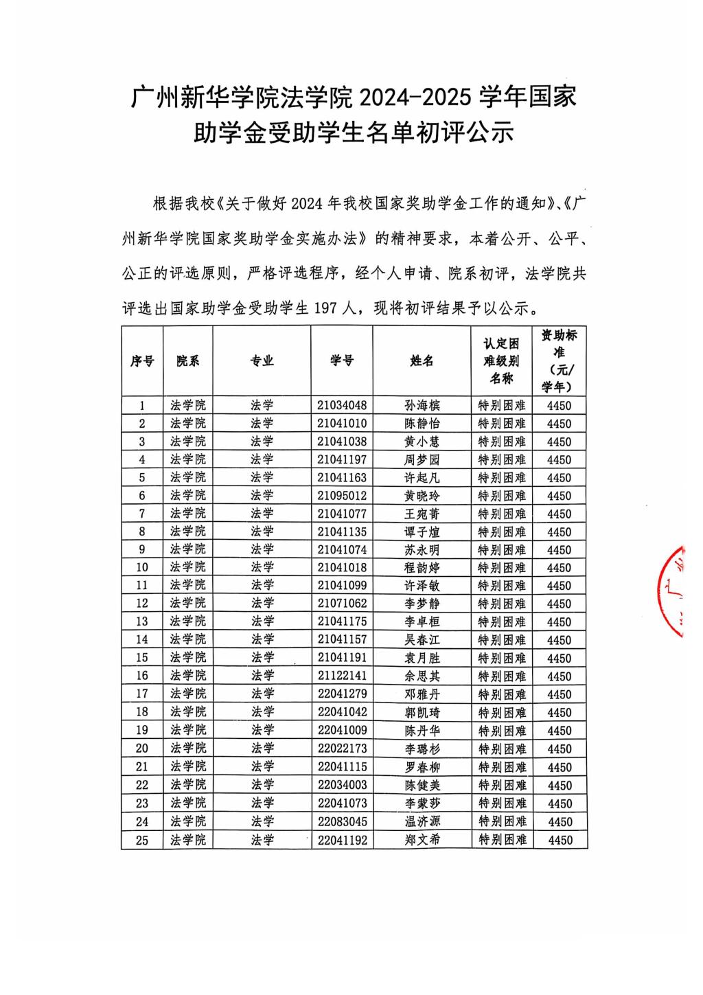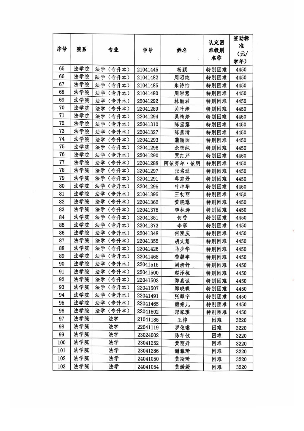 3044永利,3044永利2024-2025学年国家助学金受助学生名单初评公示