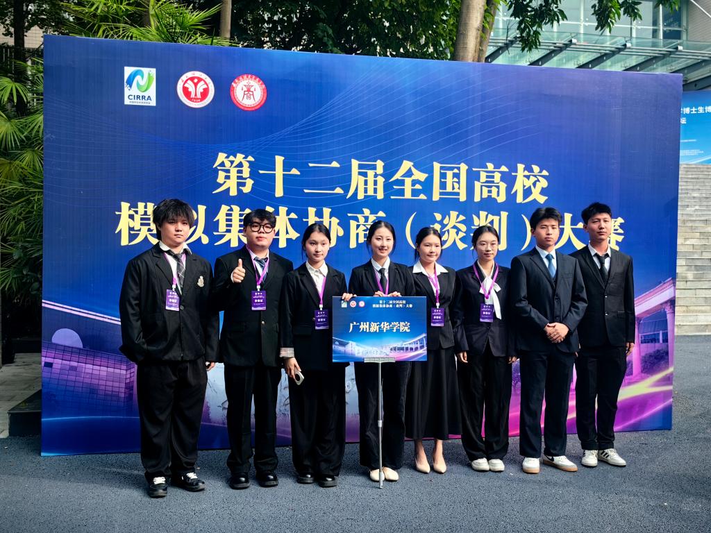 我校劳方代表队(由22级行政管理专业蔡丽华、22级法学专业韩思航、23级法学专业杨景汉、23级社会工作专业陈聪组成)荣获二等奖,资方代表队(由22级法学专业陈乐林、22级人力资源管理专业吴绮棋、23级人力资源管理专业莫家旭、23级法学专业张泽慧组成)荣获二等奖;蔡丽华、莫家旭和韩思航三位同学荣获“最佳谈判员奖”;李岚老师和罗亮梅老师荣获“优秀指导老师奖”。