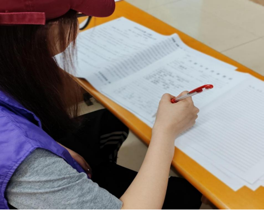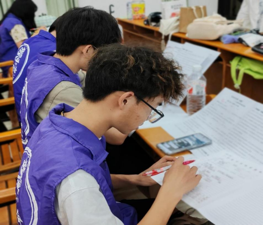 宪法知识竞赛正式开始,工作人员分发试卷后,同学们开始作答。