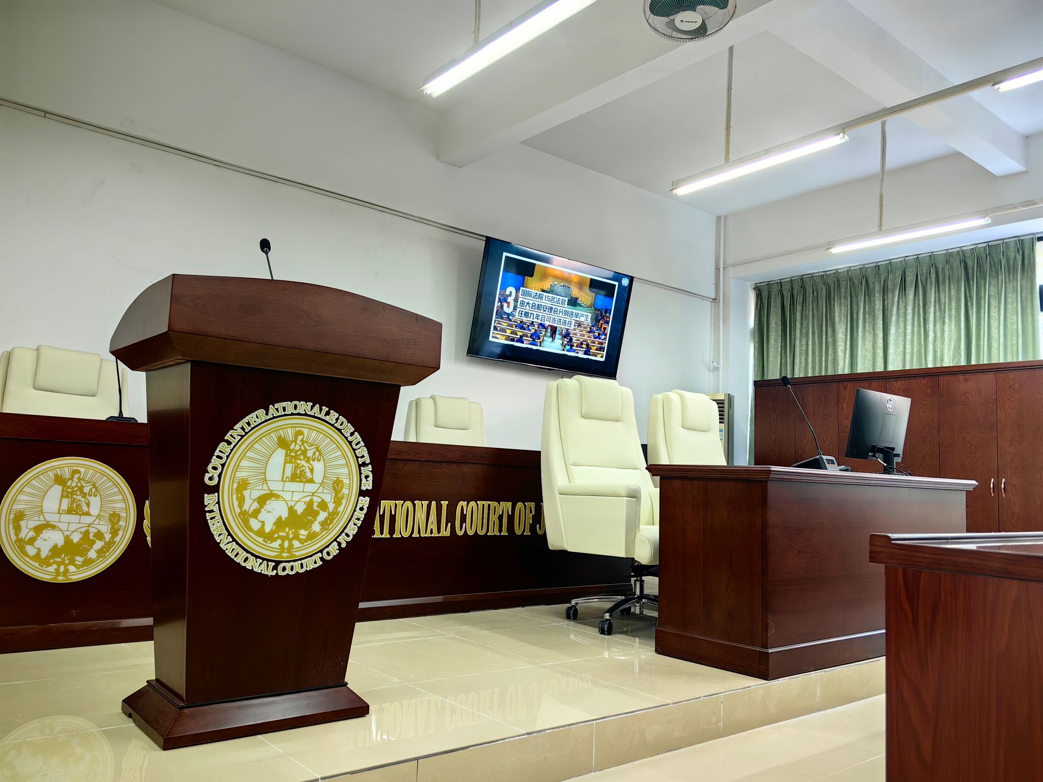 国际法庭为联合国主要司法机关,负责依国际法解决国家之间的法律争端,并对联合国各机关和专门机构向其提出的法律问题发表咨询意见。模拟国际法庭位于格物楼②B307课室,是3044永利新设立的教学实训室,契合了涉外法治人才培养的教学计划,现有《国际公法》《国际私法》《刑法(总论)》《民法(总论)》四门课程在此开展。在2024年度,学院于此开展了首场全英文模拟国际法庭活动,是3044永利的特色项目,也是法学专业学生校内实践与实训的重要基地。