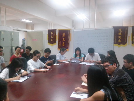 2016年5月13日晚6点半,在支部书记廖平老师的主持下,法律学系党支部于系办公室集中开展以“学党章党规、学系列讲话,做合格党员”为主题的学习教育活动暨党支部会议。出席此次会议的有温雯菲老师、李帅男老师以及法律学系13、14级全体学生党员。