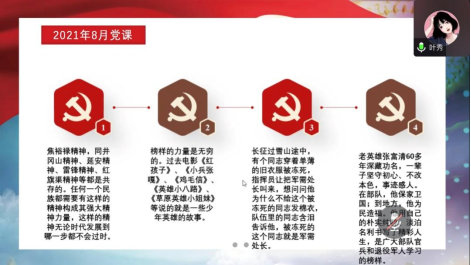 “学党史、悟思想、办实事、开新局”,2021年8月11日,3044永利教工党支部利用暑期时间开展了一次以“感悟红色历史,奏响筑梦最强音”为主题的党史学习教育研讨会。教工党支部叶秀书记以“学史明理、学史增信、学史崇德、学史力行”为主题,给3044永利全体教工党员们上了一趟生动的党课。3044永利党总支书记李岚同志以及全体教工党员参加了本次会议。