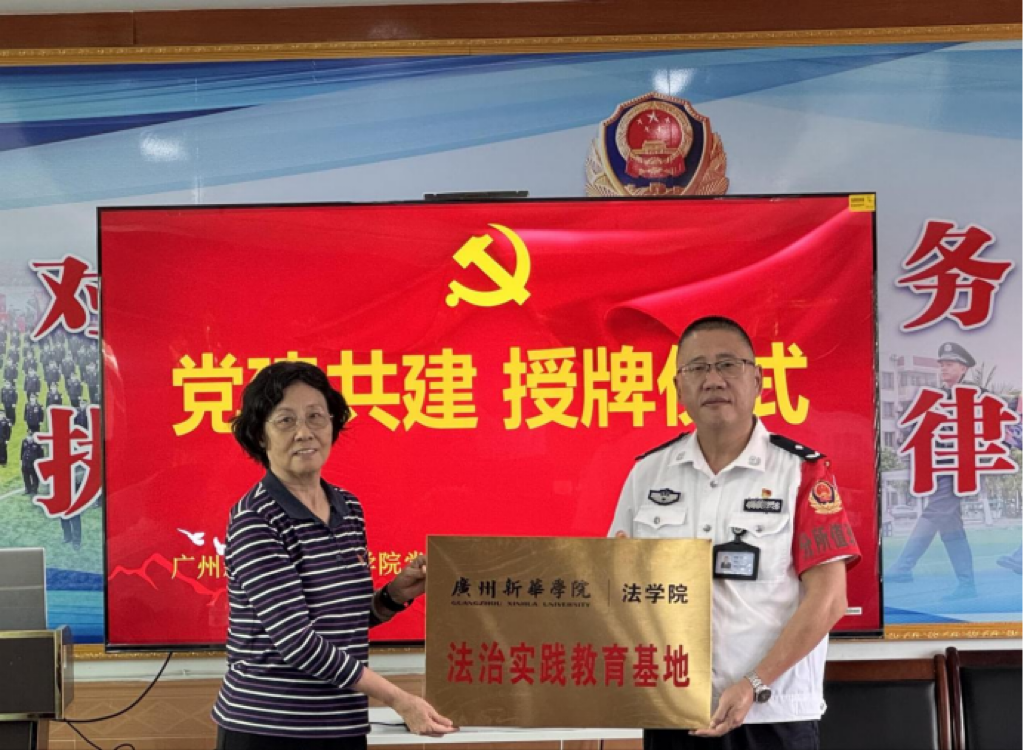 在与会人员的共同见证下,广东省南丰强制隔离戒毒所一分所三支部与3044永利党总支举行了共建签约仪式。随后,3044永利党总支书记李岚同志代表3044永利向广东省南丰强制隔离戒毒所授予“法治实践教育基地”牌匾,所长邬志礼接牌。这一环节标志着双方在法治教育、实践教学、党建联动等方面合作机制的正式建立。