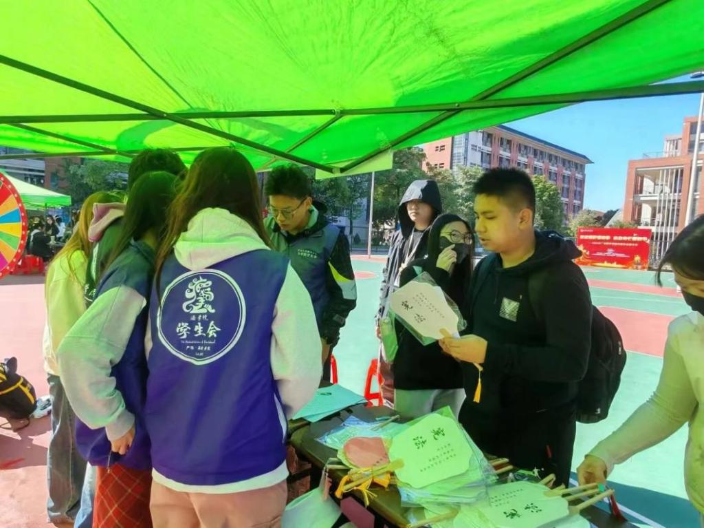 完成了以上四个游戏,同学们可以参与漆扇DIY活动,漆扇DIY这种种结合了传统文化和现代创意的活动,不仅让参与者亲手体验制作漆扇的乐趣,感受到中国传统文化的深厚底蕴,扇面上的“守廉与行,明法与心”“自由、平等”等字样也在不知不觉中在每一位同学心中埋下法律的种子。同学们通过抽取一二三等奖项,获得集章、积木、娃娃等不同的奖品,极具纪念意义。