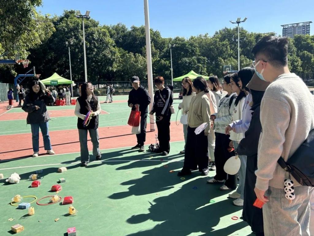 同时,三等奖还有机会参与套圈。工作人员在地面上整齐地摆放了各类小礼品,有可爱的玩偶、卡皮巴拉小夜灯、各类卡通人物拼图等等,琳琅满目的奖品在阳光下闪闪发光,吸引着同学们的目光。参与者们手持套圈,站在规定的距离外,眼神专注,瞄准目标后轻轻抛出手中的圈。有的同学手法精准,圈套住心仪的奖品,引得周围人群发出阵阵赞叹;有的同学虽未能一击即中,但也不气馁,调整状态继续尝试,现场加油助威声此起彼伏。