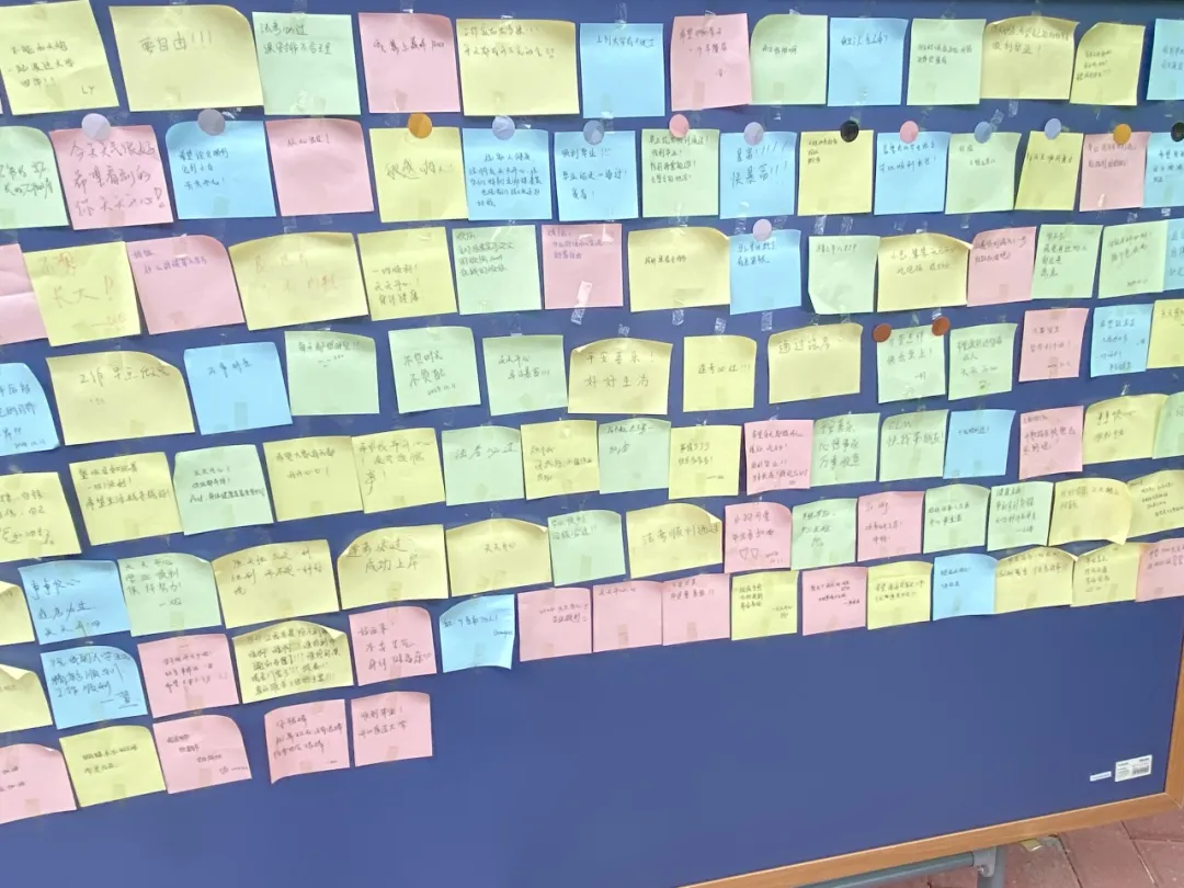 活动现场,五彩斑斓的“情绪便利贴”成为了最吸引人的风景线。同学们纷纷拿起笔,在便利贴上写下自己此刻的心情或想要倾诉的话语,无论是喜悦、悲伤、困惑还是期待,都被一一记录下来。这些便利贴被贴满了整个活动区域,形成了一道独特的风景线。