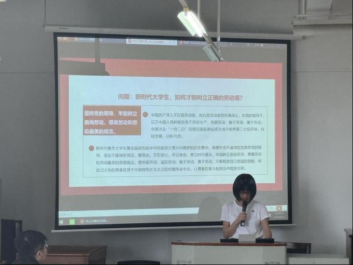 五一劳动节将至,张君霖老师为团支书们分享了关于劳动的重要知识。她解答了“新时代大学生如何树立正确劳动观”与“如何弘扬劳动精神”两大问题。树立正确劳动观,大学生应坚持党的领导,崇尚劳动,尊重劳动和劳动最美的观念,勤于和善于劳动,积极投身中国特色社会主义建设。弘扬伟大劳动精神,大学生需要在劳动实践中始终与劳动人民一起脚踏实地,勤于学习,提高综合素质。大学生应以习近平新时代中国特色社会主义思想为指导,在劳动中立足日常、立足专业和立足自身,积极劳动,为民族复兴贡献力量。
