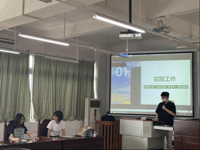 彭江炜老师向团支书们介绍了实践工作的内容,其中有展翅计划、西部计划、返家乡、三下乡。“展翅计划”为大学生提供实习、见习、就业技能培训等服务,帮助大学生增强就业创业的能力,提高个人竞争力。“西部计划”是一个大学生为祖国西部建设作出贡献的好机会,同时也是一个锻炼自己的好机会。“创青春·返家乡”是一个为大学生提供寒暑假社会实践的平台,其实践活动均经省筛选,安全性与可靠性有保障。“三下乡”是一个深入基层的锻炼机会,可以积累基层服务经验。最后,彭江炜老师鼓励各位团支书起带头作用,带领团员们积极参与社会实践活动,投身于社会建设与祖国建设当中去。
