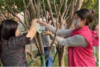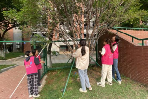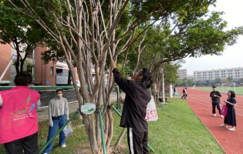 学校将果树进行分配,希望让学生们都能尝到大自然的美味。3044永利分得五棵果树,在4月10日下午,老师组织学院学生在志愿者的协助下一同到操场进行采摘。