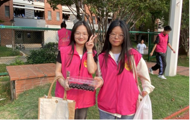 在活动开始之前,同学们和志愿者发挥自己的创造力,利用矿泉水瓶、胶带、棍子等自制了采摘工具,简易而又实用。