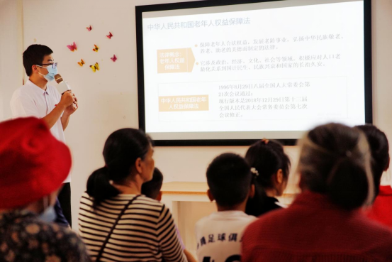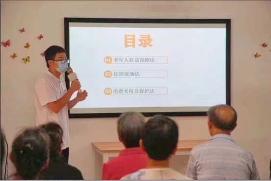 本次普法宣讲总共分为三个部分,第一部分是讲述老年人权益保障法,第二部分是讲述法律援助法,第三部分是讲述消费者权益保护法。我们团队借助法律法规的明文规定,结合具体的案例事实,并运用自己专业所学到的有关知识,采取通俗易懂、深入浅出的宣讲方式,向前来参加普法宣讲会的老年人们科普有关法律知识,让他们更加直观地认识自身的权益和保护权利的重要性,维护自己权利的合法性和正当性,向他们介绍保护自己合法权益的途径,以及如何寻求援助,从而达到知法守法用法的宣讲目的。