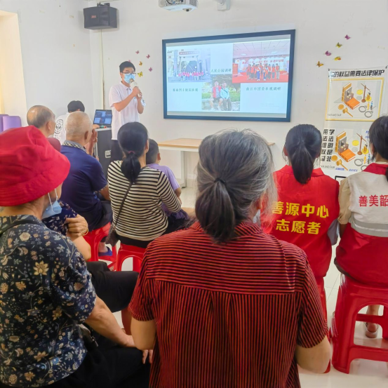 在普法宣讲会过程中,我们团队采用PPT和视频放映的形式来活跃现场氛围,使得原本枯燥乏味的法律知识变得生动有趣,也提高了老年人学习法律知识的积极性,为现场增添了几分活力与生气。