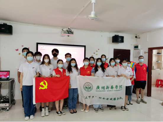 (薪火相传社会实践队与服务中心社工和志愿者们的合照)