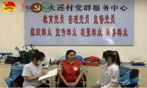 (扬法远航社会实践队在党群服务中心采访工作人员)