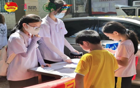 年少期望奔向远方,衔一粒种子守得一片姹紫嫣红。“扬法远航”社会实践队顶着烈日乘车出行,按预计时间提前到达了定点地布置现场,为上午的定点普法作好准备。