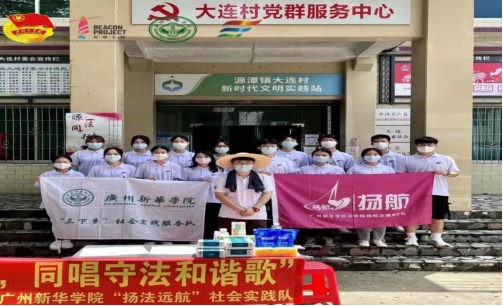 为提高群众的法律知识水平和增强群众的法治观念,推进农村基层法治建设,3044永利“扬法远航”社会实践队于2022年7月10号前往广东省清远市源潭镇大连村进行定点普法和入户调研的活动。