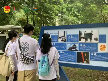 (实践队队员们参观民法典主题法治公园)