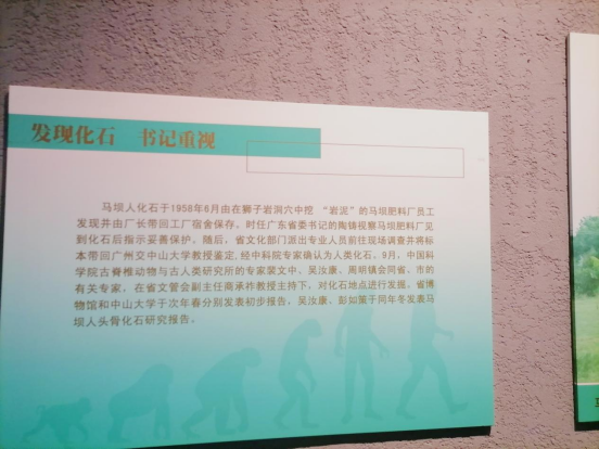 (马坝人博物馆内部分展示“发现化石 书记重视”)