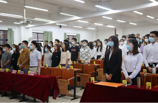 八点整,大会正式开始。本次大会第一项议程是全体成员奏唱国歌及共青团团歌。随着歌声响起,全体师生庄严肃立,意气风发。