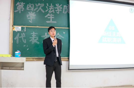 第七、第八项议程分别为公布换届结果名单以及新任主席邱式鑫发表就职演讲。邱式鑫同志对大家的支持表示感谢,并郑重声明在今后的工作中定不忘初心,砥砺前行,未来会带领3044永利学生会继续传承高度的奉献精神,从学生中来,到学生中去,全心全意为3044永利同学服务。
