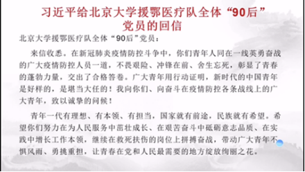 (习近平总书记给北京大学援鄂医疗队全体“90”后党员回信内容)