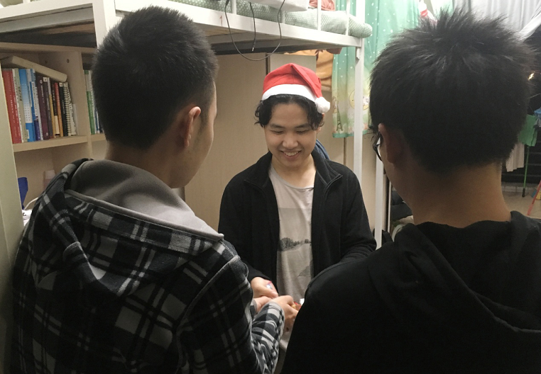 恰逢圣诞节,2016年12月25日,法律学系2014级C班的全体班委们精心准备,举办了一场别开生面的“圣诞祝愿卡”活动,以此传递了同学们之间纯真的祝愿。尽管夜晚寒意阵阵,但伴随着节日音乐的响起,宿舍楼里洋溢着热闹欢快的圣诞气氛。“圣诞节快乐!Merry Christmas!” 的祝福声,此起彼伏。
