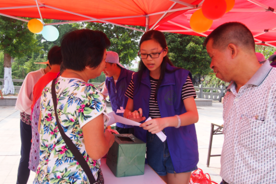 早上8点,我系学生会的工作人员便乘车前往目的地,布置场地。此次游园会共分为四个区域:第一个是普法宣传资料派发区,市民可在此区域免费领取普法小册子和司法分局特印的环保袋;另外三个区域是互动游戏区域:第一个是问答游戏:市民通过投掷小球回答特定类型的法律小问题;第二个是猜灯谜:市民们通过回答绳子上挂着的法律小灯谜来完成此关;第三个游戏的名字叫做“一站到底”:游戏规则是两位参赛者站在同一张报纸上回答问题,答错则对折报纸,答完六题后两人仍可以双脚稳定站立在报纸上即为完成。市民们在顺利完成四个区域的互动活动后,便能领取小礼品:麻涌司法分局提供的纪念帽子。刺激而有趣的游戏环节吸引了许多市民前来参加,现场十分热闹。