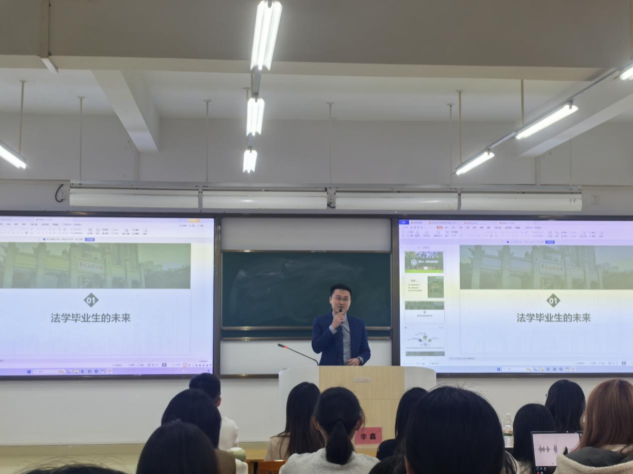 朱俊凯首先深入剖析了法学毕业生面临的发展方向选择,对于法考、考研以及考公作出了全面的阐述和建议。他强调,法律职业资格证书是任何法律职业的“敲门砖”,鼓励同学们要把法考作为优选。在就业方面,朱俊凯建议同学们要不断提升自身的专业素养,切实解决实际问题,可以考虑向律师行业发展。