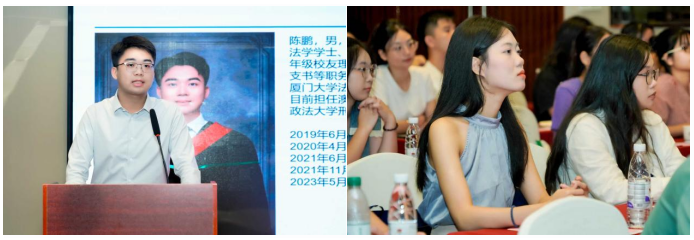 陈鹏(2022届校友)律师,以《不负韶华,律途有我》为题,分享了自己在律师职业道路上的尝试与收获。他讲述了自己从初入职场到成为资深律师的心路历程,陈鹏律师针对青年律师面临的成长瓶颈,提出了富有前瞻性的见解——“打破个人边界,发挥各领域优势”。他鼓励青年律师勇于跳出舒适区,积极跨界学习,将不同领域的知识与法律实践相结合,从而开拓更广阔的视野和更丰富的案源渠道。同时,陈鹏律师也分享了如何利用个人平台,在有限的市场资源中高效拓展案源的策略,为青年律师的职业生涯发展提供了宝贵的指导和启示。他鼓励大家要勇于面对挑战,敢于担当责任,用实际行动书写属于自己的法律人生。