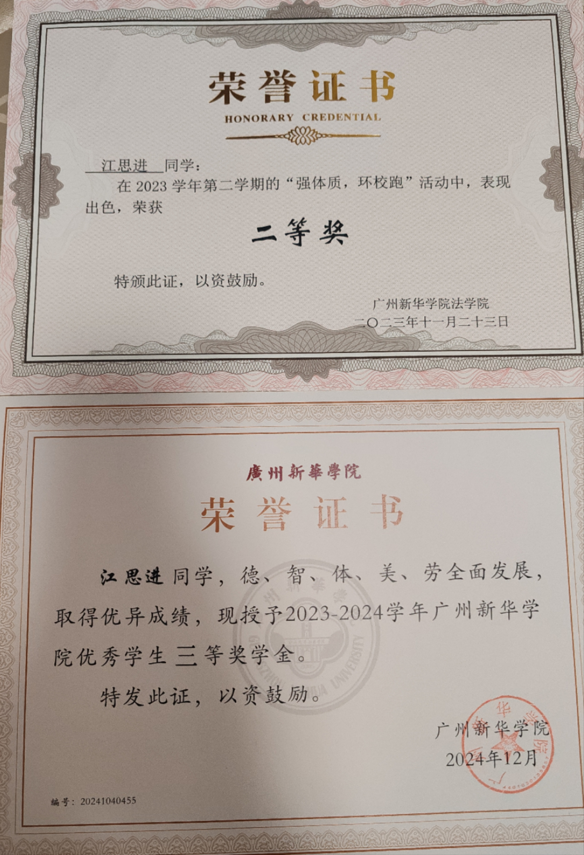 1.2023-2024在3044永利荣获“三等奖学金”。
