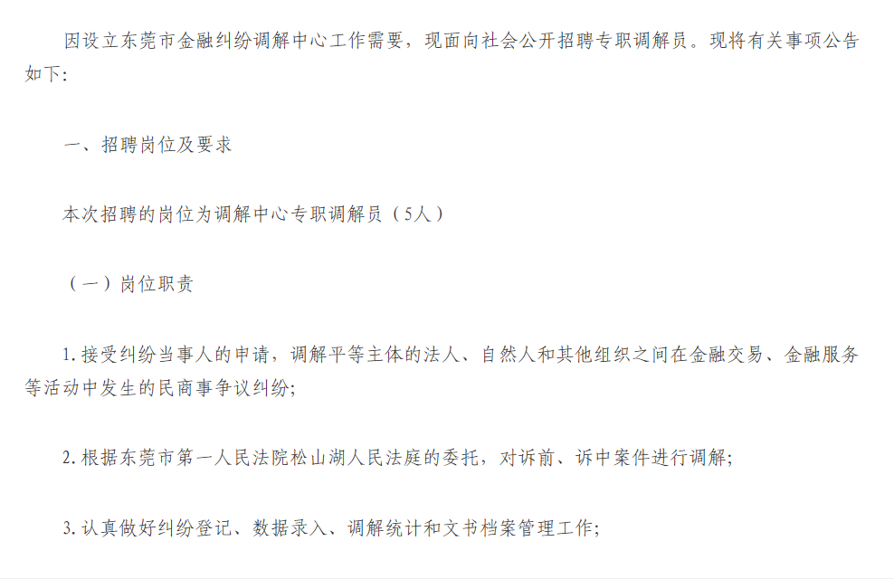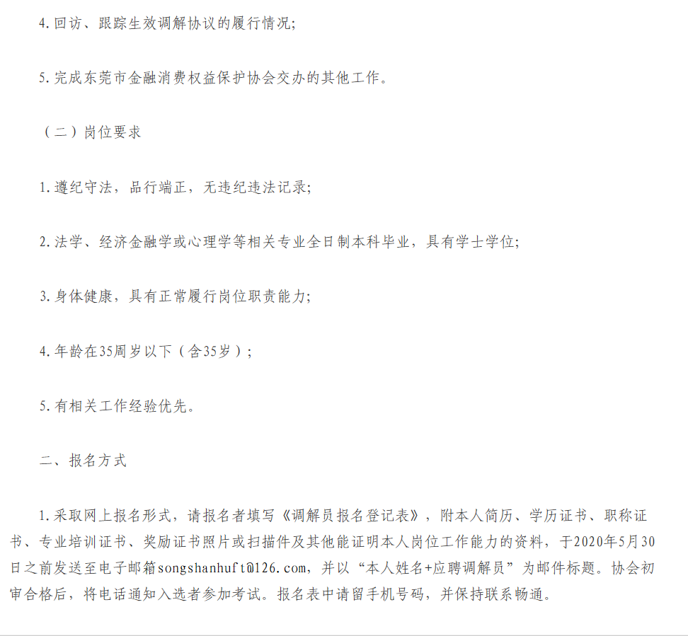 东莞市金融消费权益保护协会招录专职调解员公告
