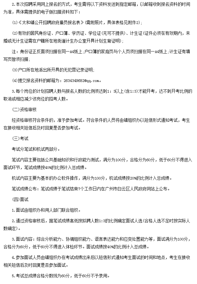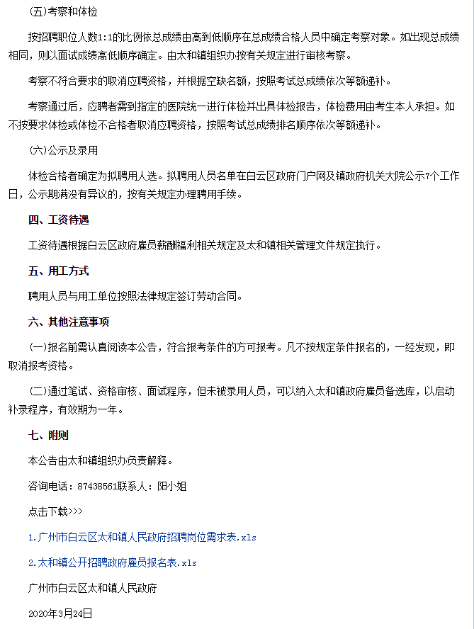 2020年3月广州市白云区太和镇人民政府招聘公告